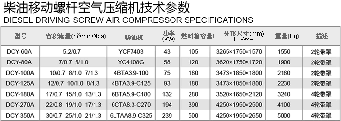 柴油移動螺桿空氣壓縮機